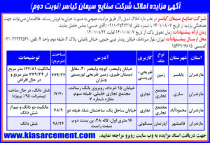 شرکت صنایع سیمان کیاسر در نظر دارد املاک ذیل را از طریق مزایده عمومی به صورت جزئی به فروش رساند. علاقه مندان می توانند جهت هماهنگی بازدید از تاریخ ۰۷/۰۸/۱۴۰۱ با شماره تلفن ۰۹۱۱۳۵۴۷۲۱۵ (آقای حسنی) تماس حاصل نمایند.